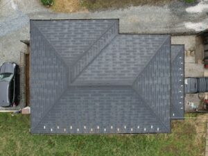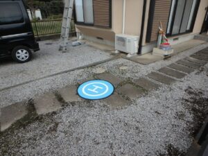 下屋根の点検を終えてから、ドローンで大屋根の確認に移ります。