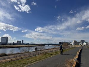 ※写真は現場から帰社途中の多摩川の土手から撮影しました。いい天気です!