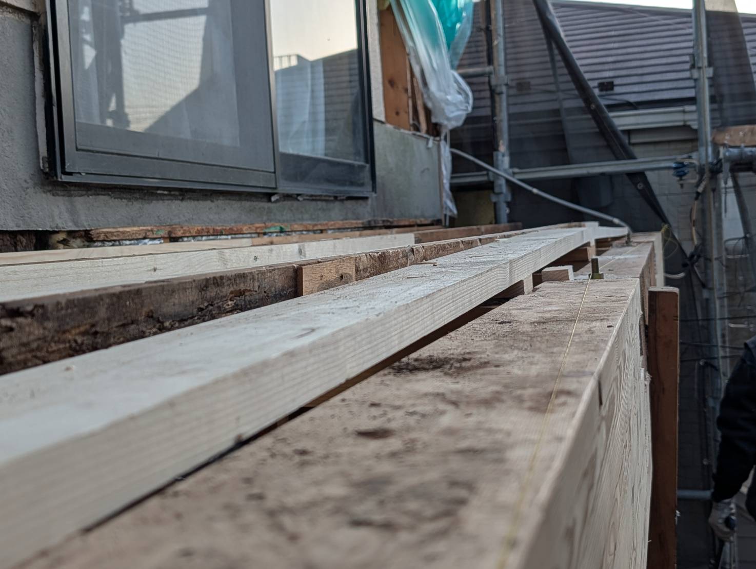 桁や梁、柱の補強が必要となり、既存のバルコニーはほとんど解体して作り変えのような事になりました。